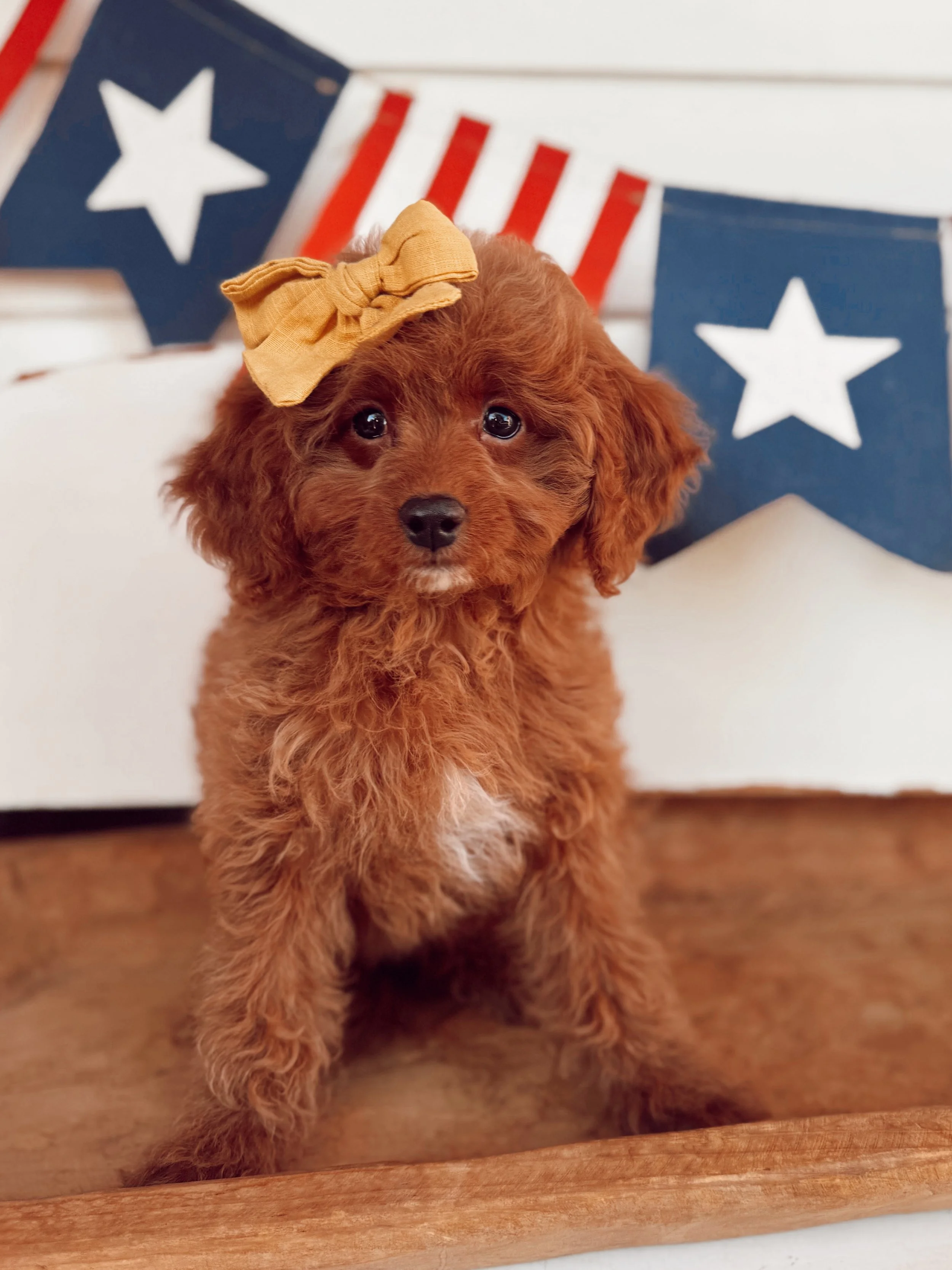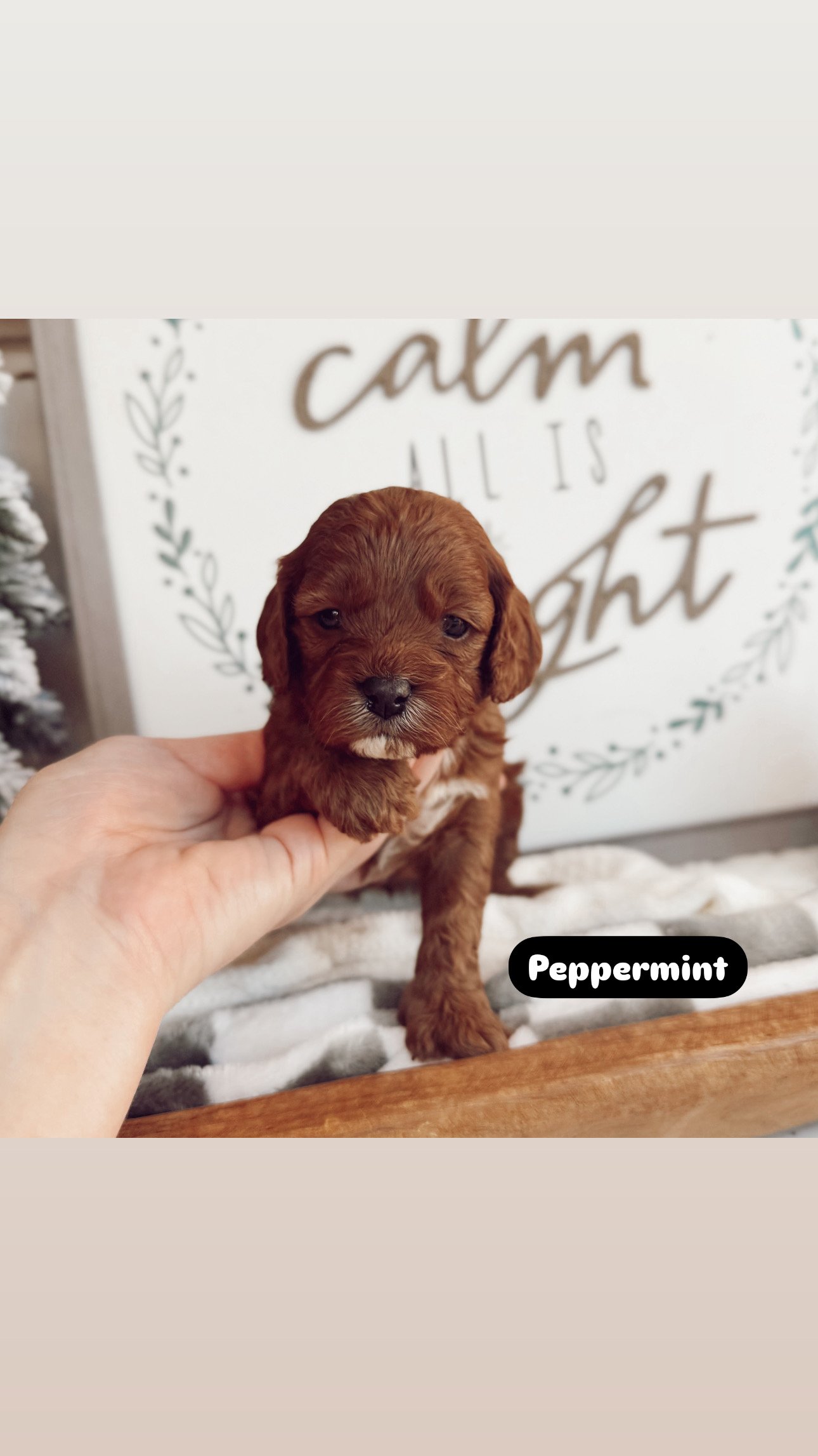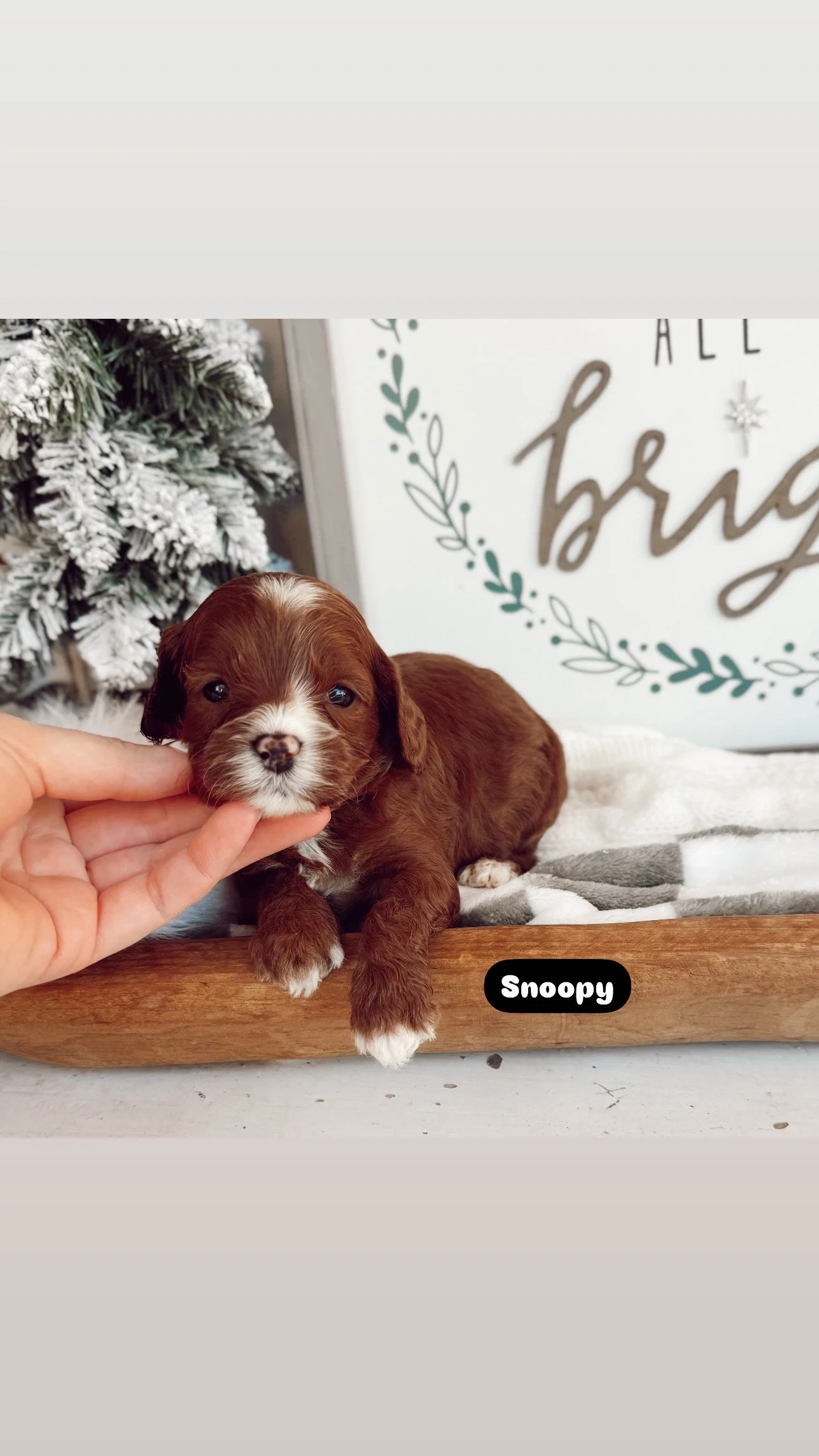 Snoopy is so adorable! he’s the littlest guy out of Ruby/Jockeys cavapoo litter. He is super chill and a quiet boy so far. He is here for cuddles and to lay on the couch for a good long movie. He’s still young but showing his sweet little personality more and more each day